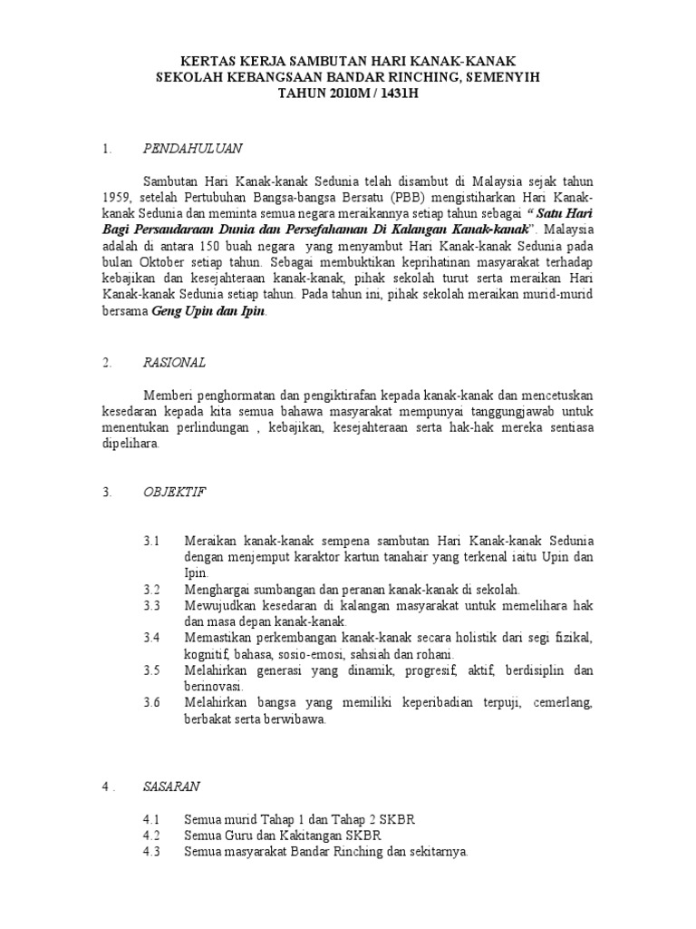 Doc Kertas Kerja Sambutan Hari Kanak Kanak 2015 Wan Norzakiah Academia Edu